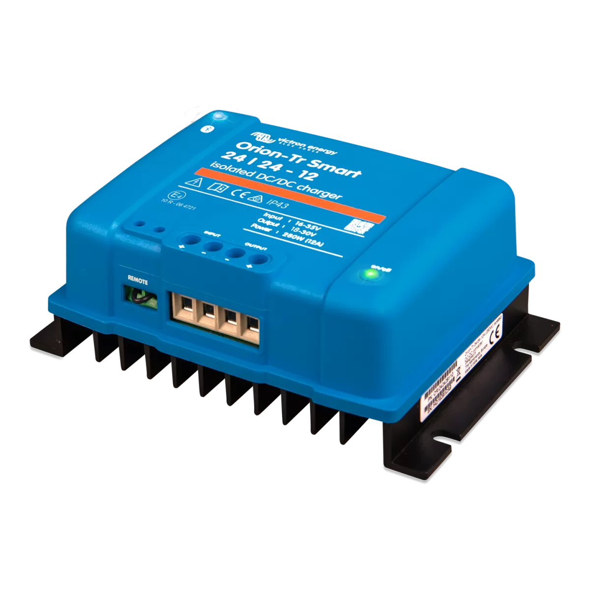 Il booster di ricarica Victron Orion-Tr Smart DC-DC è un caricabatterie professionale adattivo a 3 stadi da CC a CC con una funzione Bluetooth integrata. Il booster di carica B2B è ideale sia per batterie al piombo che per batterie al litio. È possibile collegare in parallelo un numero illimitato di questi dispositivi per aumentare la potenza in uscita e accelerare così la carica delle batterie.