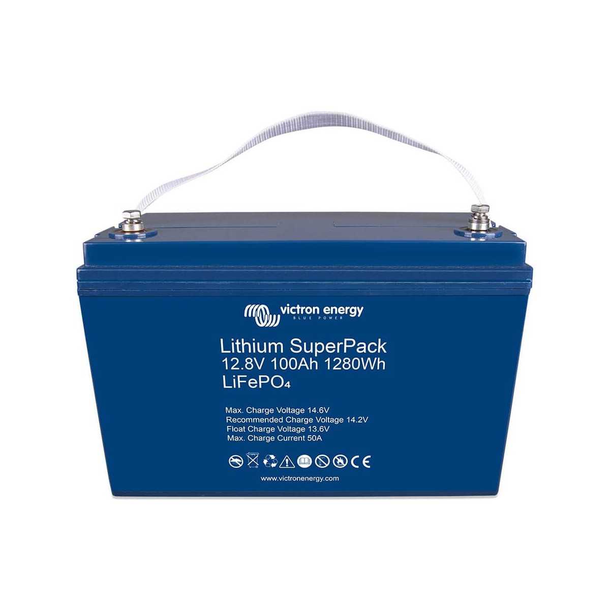 Batteria Victron SuperPack 12,8 V 100 Ah con BMS integrato: LiFePO₄ leggera, efficiente (92 %), protezione avanzata e installazione plug-and-play. Ideale per solare, camper, barche e backup.
