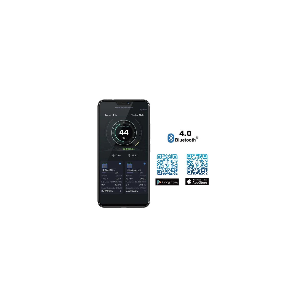 Tutte le batterie Ultimatron sono realizzate con celle al litio ferro fosfato, note per l’elevata stabilità termica, la lunga vita utile (oltre 6000 cicli) e la sicurezza in ogni condizione di utilizzo. - App Bluetooth per il monitoraggio in tempo reale