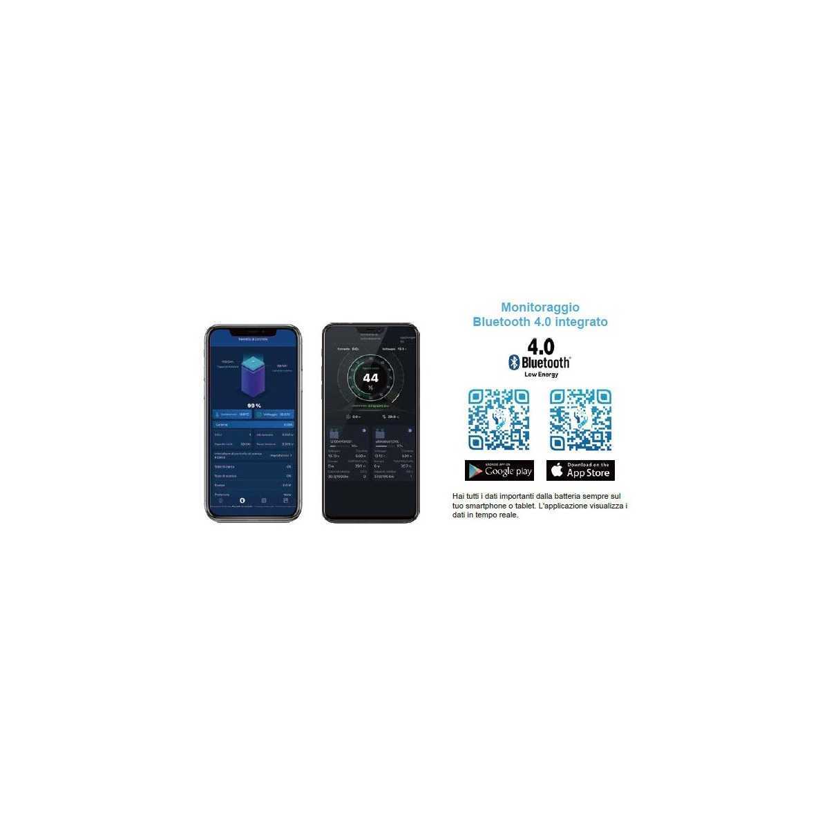 Uno dei tratti distintivi del brand è l’integrazione del Bluetooth in ogni batteria: tramite l'app dedicata è possibile controllare dallo smartphone in tempo reale stato di carica, tensione, temperatura e cicli della batteria, in modo intuitivo e affidabile. - BMS integrato per una protezione completa
