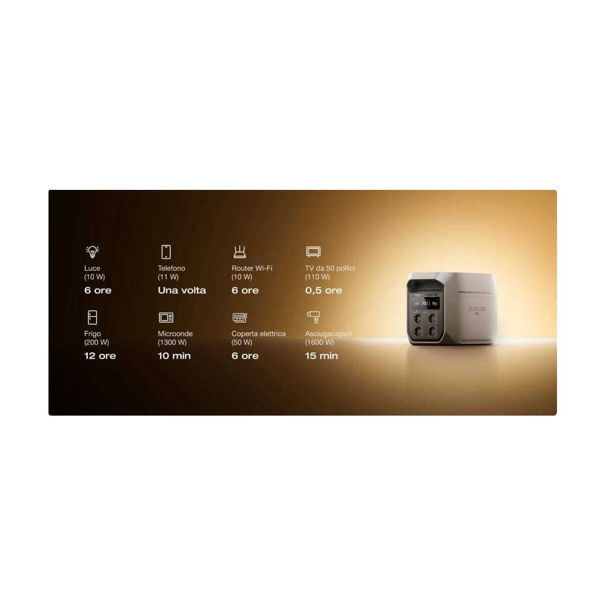 Con una capacità di base di 2048Wh, la DELTA 3 Max è la power station perfetta per vivere in off-grid senza rinunce.