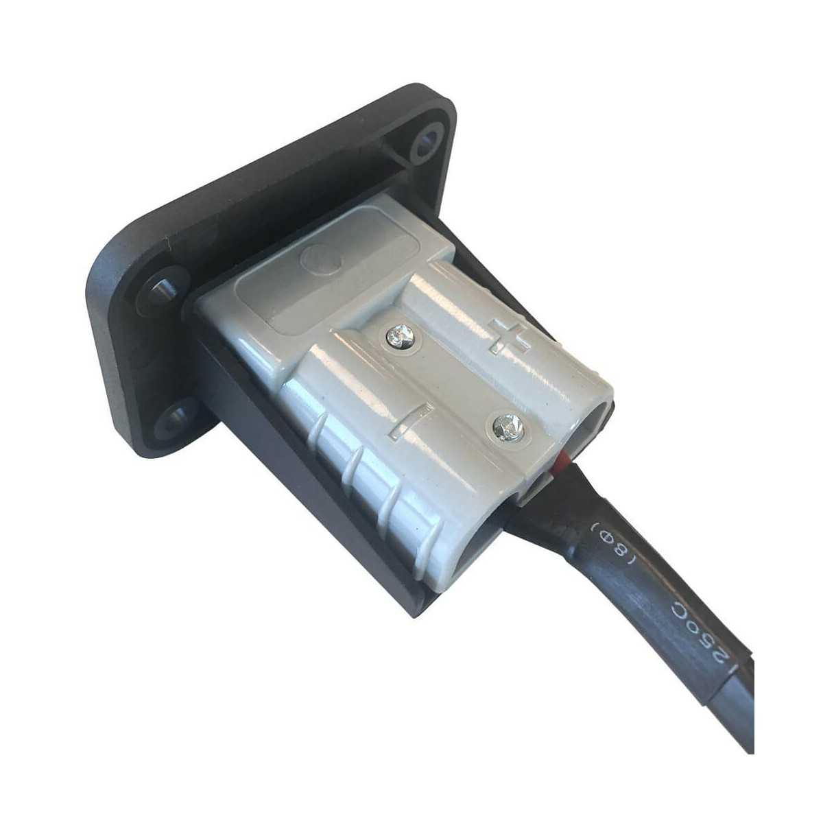 Robusto telaio in ABS color antracite che permette il fissaggio del connettore di potenza bipolare di tipo Anderson fino a 50A-