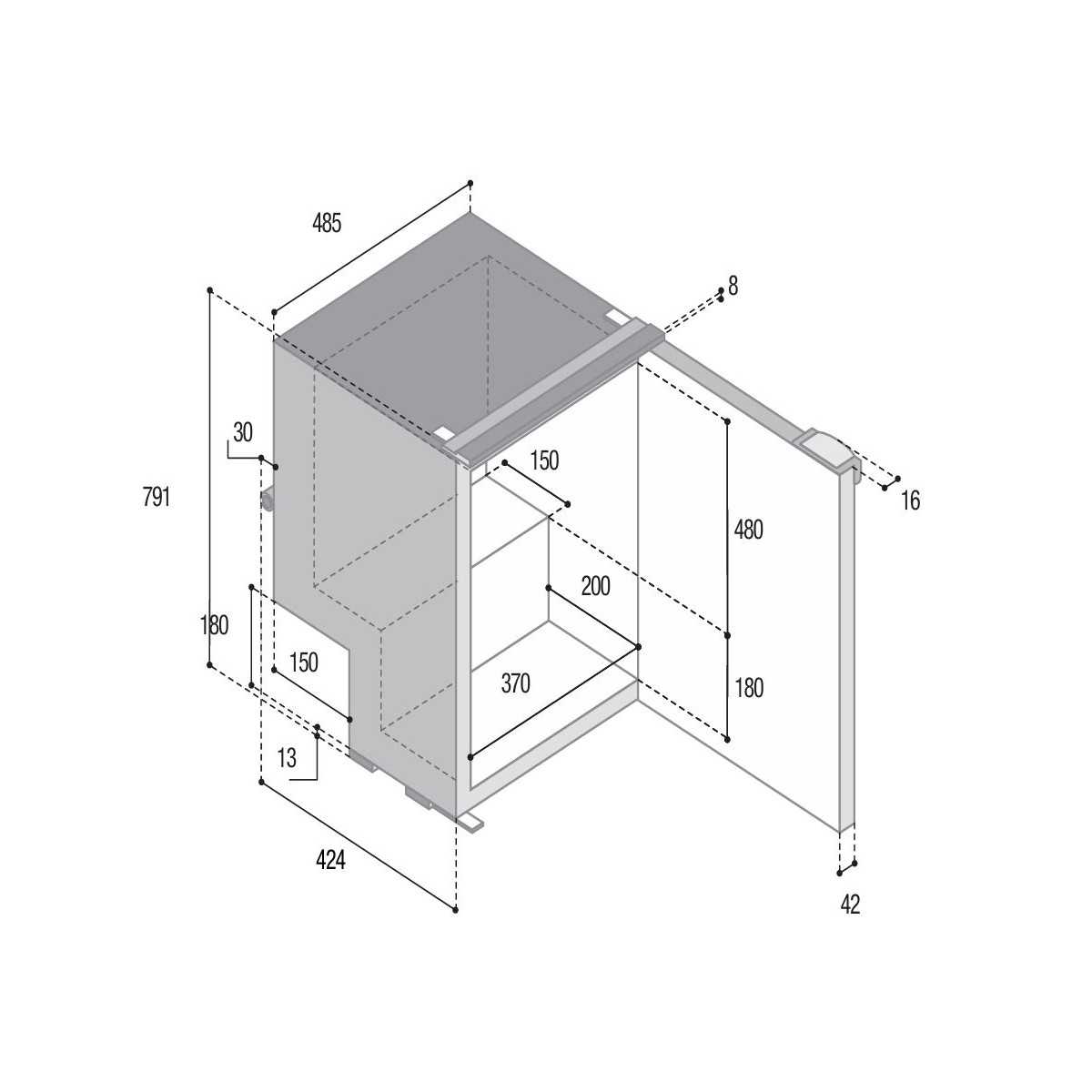 - Dimensioni: L 485 x P 466 x H 792 mm