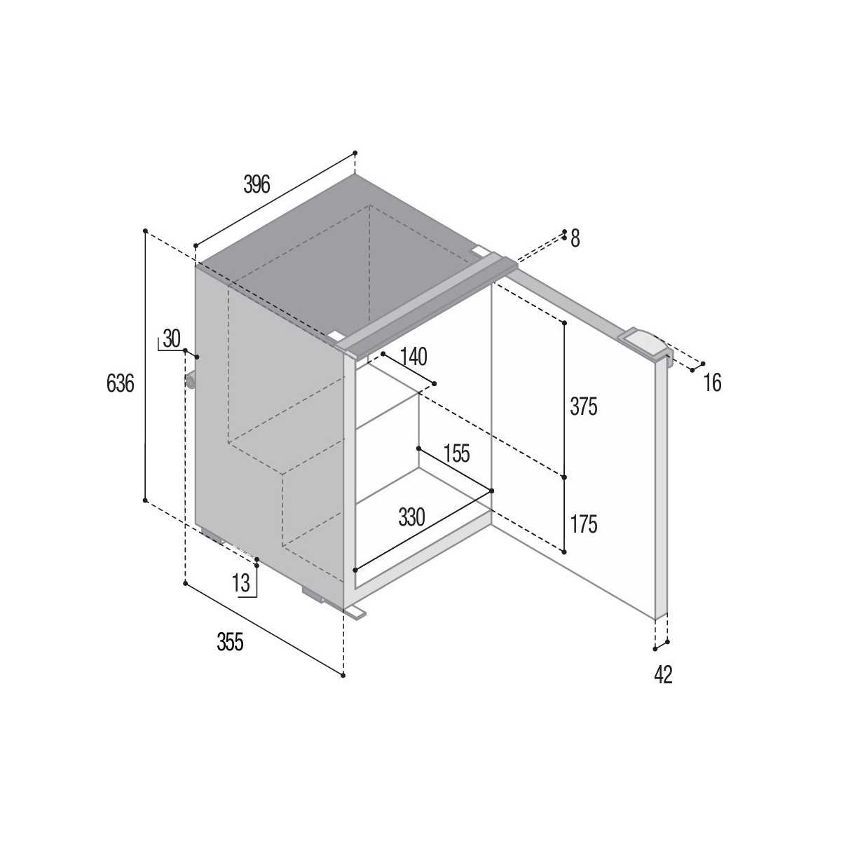 - Dimensioni: L 396 x P 397 x H 636 mm