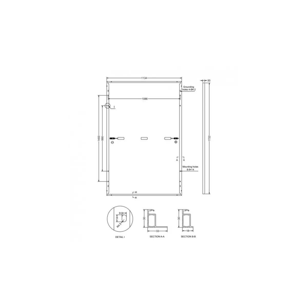 Dimensione modulo: 172,2 x 113,4 x 3 cm