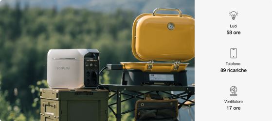 Con una capacità iniziale di 1kWh (espandibile fino a 6kWh con batterie supplementari), la DELTA 3 è l’alleata perfetta per chi cerca autonomia energetica senza rinunciare a potenza e versatilità.