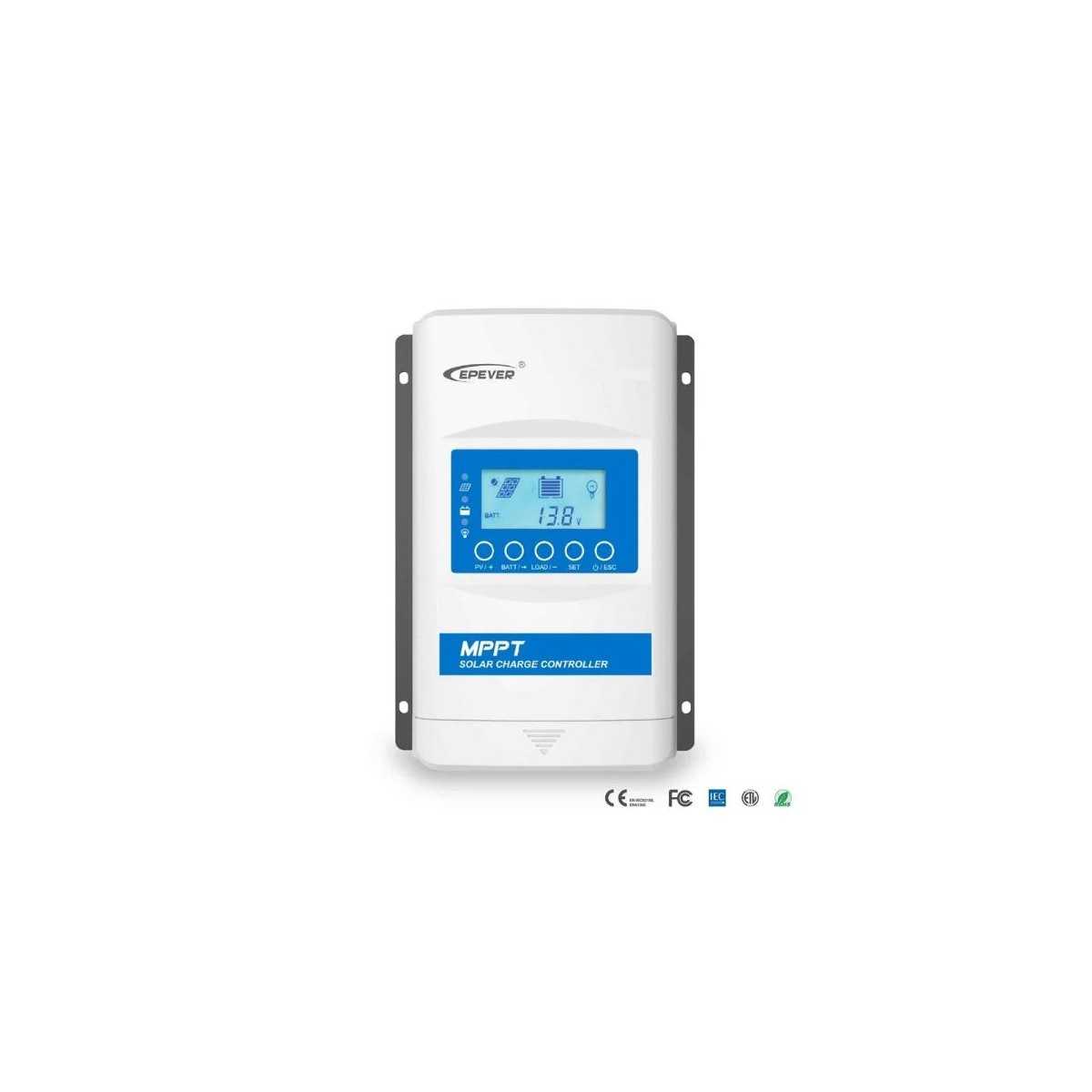 Regolatore di carica EpEver XTRA con tecnologia MPPT (Maximum Power Point Tracking), utilizzabile in impianti fotovoltaici. Grazie all’utilizzo della tecnologia MPPT, può incrementare la corrente di carica fino al 30% e oltre in confronto ai regolatori tradizionali. Il sofisticato sistema di carica a tre fasi può essere configurato per ottimizzare i parametri di carica secondo le specifiche tecniche della batteria. Il regolatore è protetto contro i picchi di tensione, sovra temperatura, sovra corrente, polarità inversa.