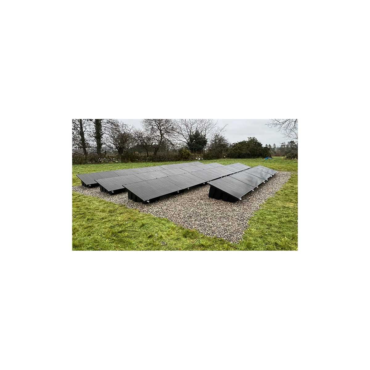 Utilizzo facile e veloce: basta appoggiare il supporto su una superficie piana, riempire con cemento, mattoni, ghiaia o sassi (a seconda della posizione, delle zone di vento e dell'altezza del tetto) e avvitare il pannello velocemente grazie a viti autofilettanti e clip.